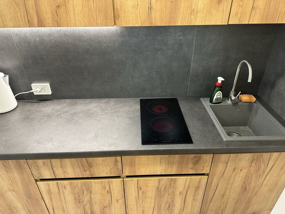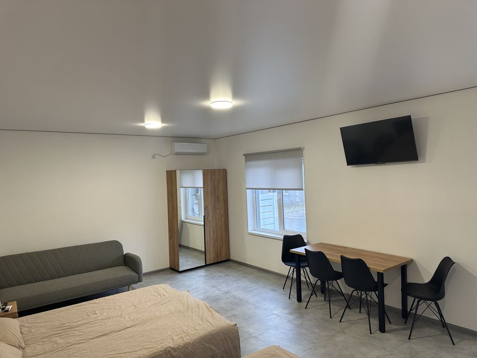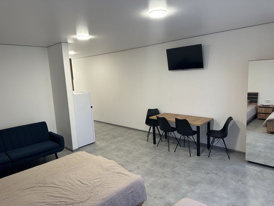 Однокомнатная квартира 35 кВ.м. - кухня-студия. В квартире: телевизор, кабельное TV, Wi-Fi, интернет, кондиционер , кухня (холодильник, микроволновая печь, электро плита, вытяжка), санузел с подогревом пола,, стиральная машинка. Двухспальная кровать, односпальная кровать, диван, также стол , стулья и шкаф.
