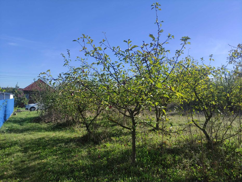 Є невеличкий сад, ділянка трохи заросла, поруч є будинки, і можливість прокласти газ, світло і т.д.