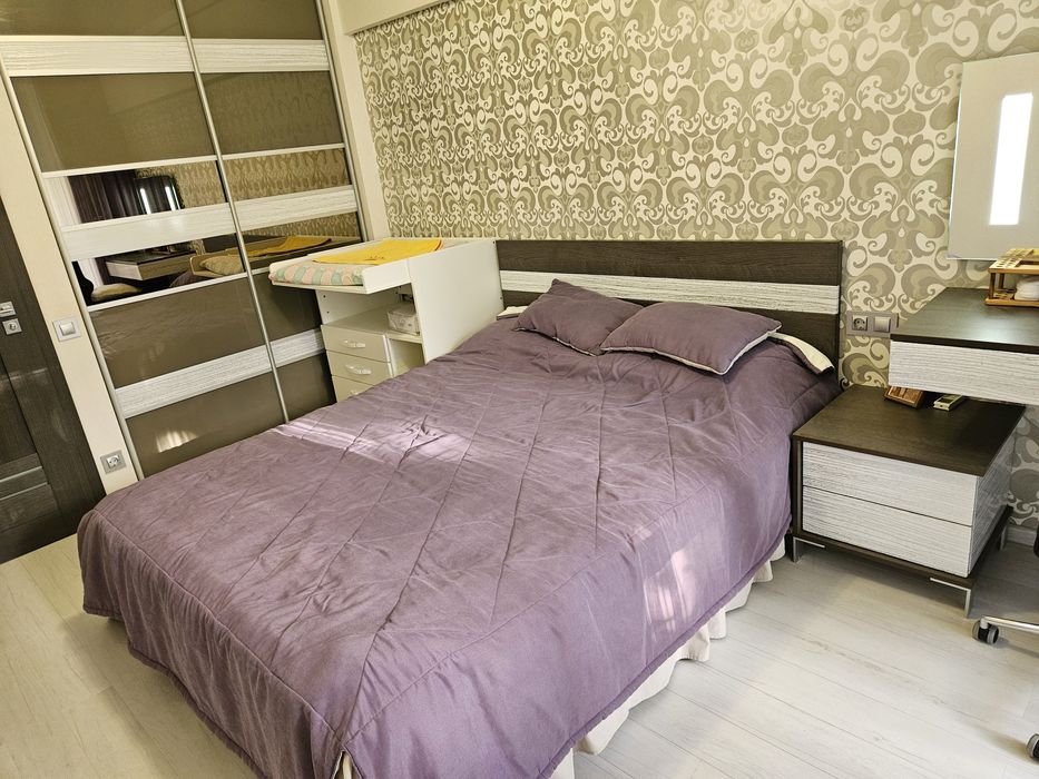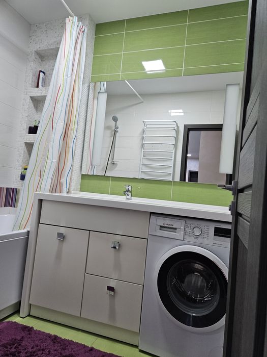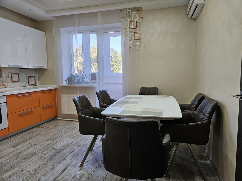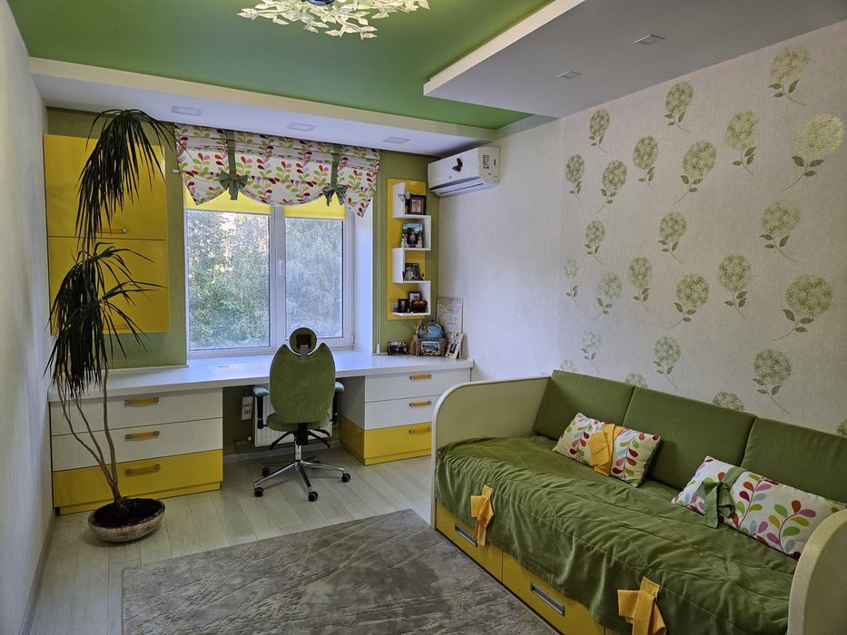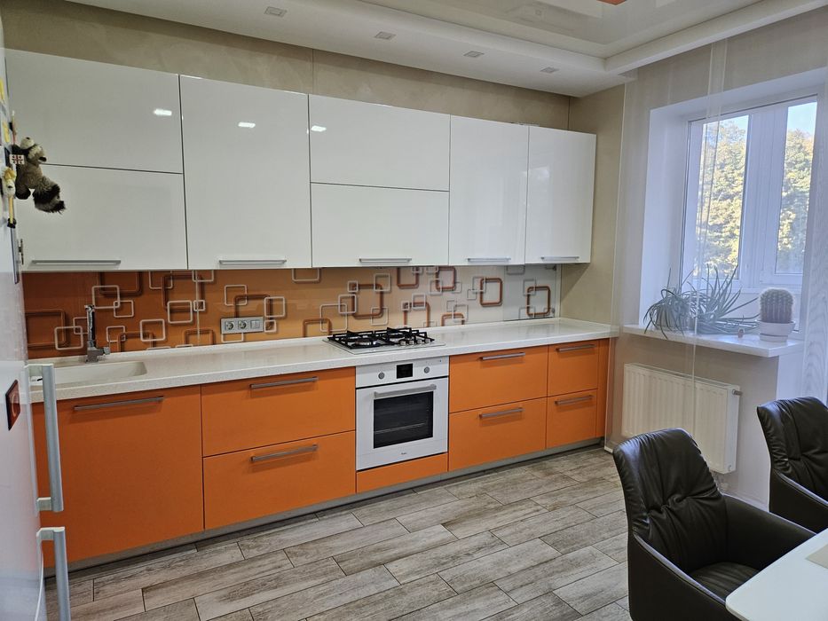 Квартира знаходиться на 2 поверсі( немає потреби у ліфті, що дуже важливо в час відключень) площа 88,7 кв.м (вітальня 21,3 кв.м; кухня 16,3 кв.м; дитяча 15,1 кв.м; спальня 13,6 кв.м). Є балкон та лоджія. Виконаний дизайнерський ремонт, всі корпусні меблі зроблені на замовлення; всі підвіконня, письмовий стіл у дитячій кімнаті, робоча поверхня у кухні, мийка, мойка у ванній кімнаті зроблено з декоративного