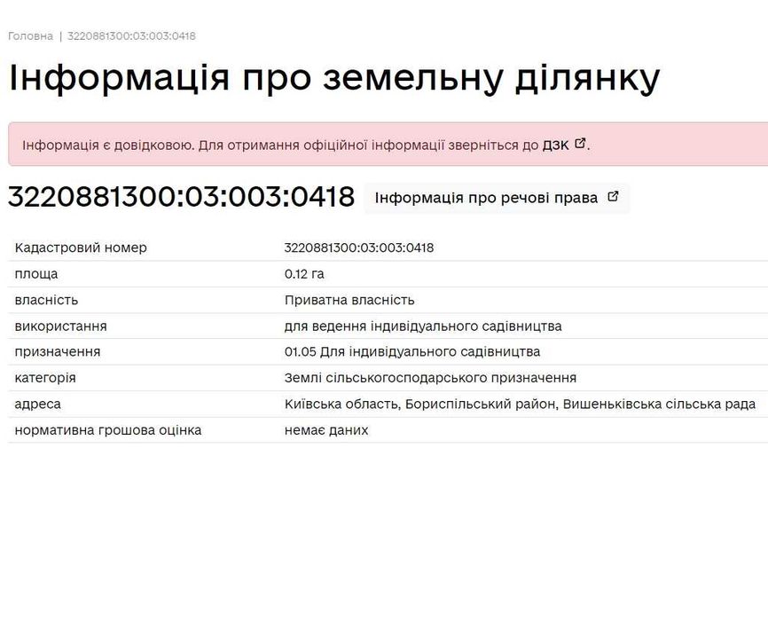 | Земельна ділянка: |