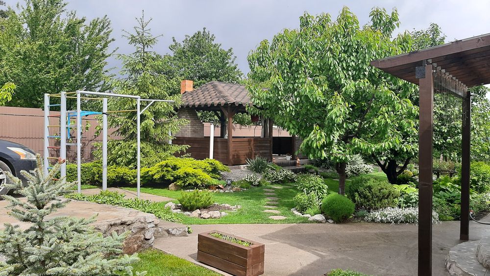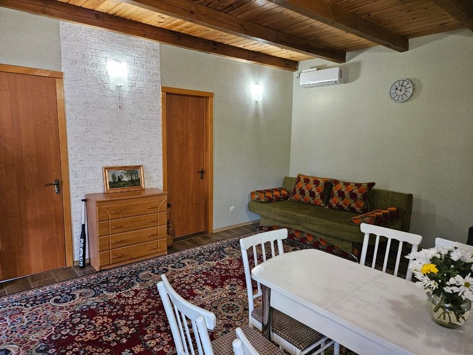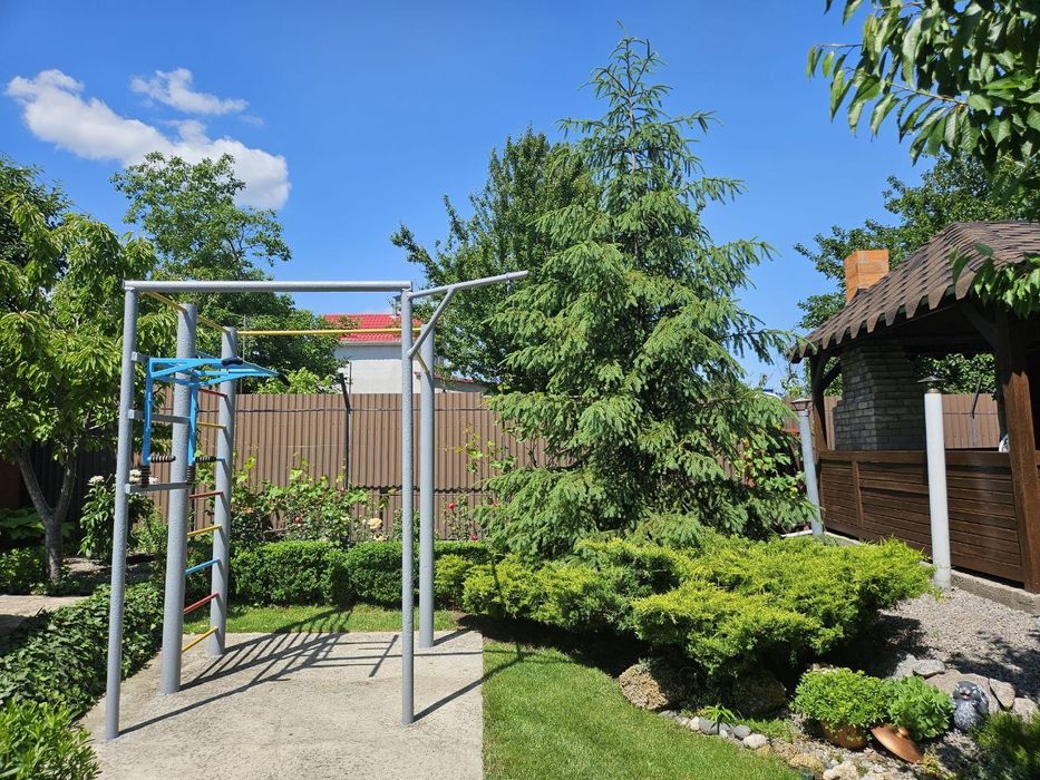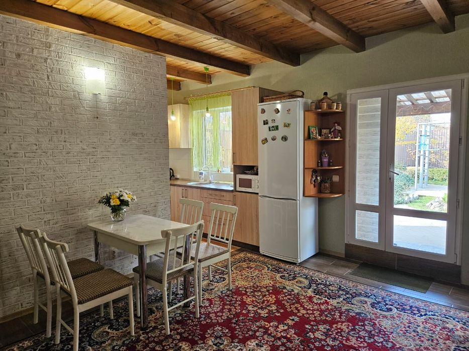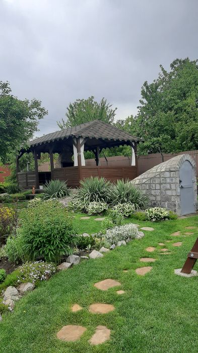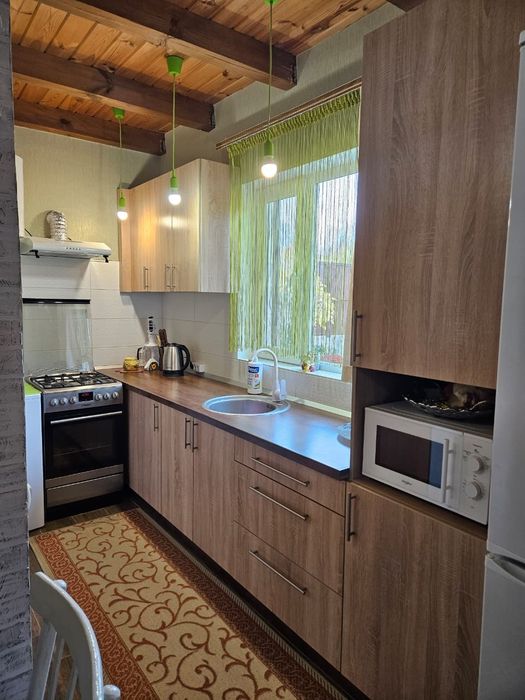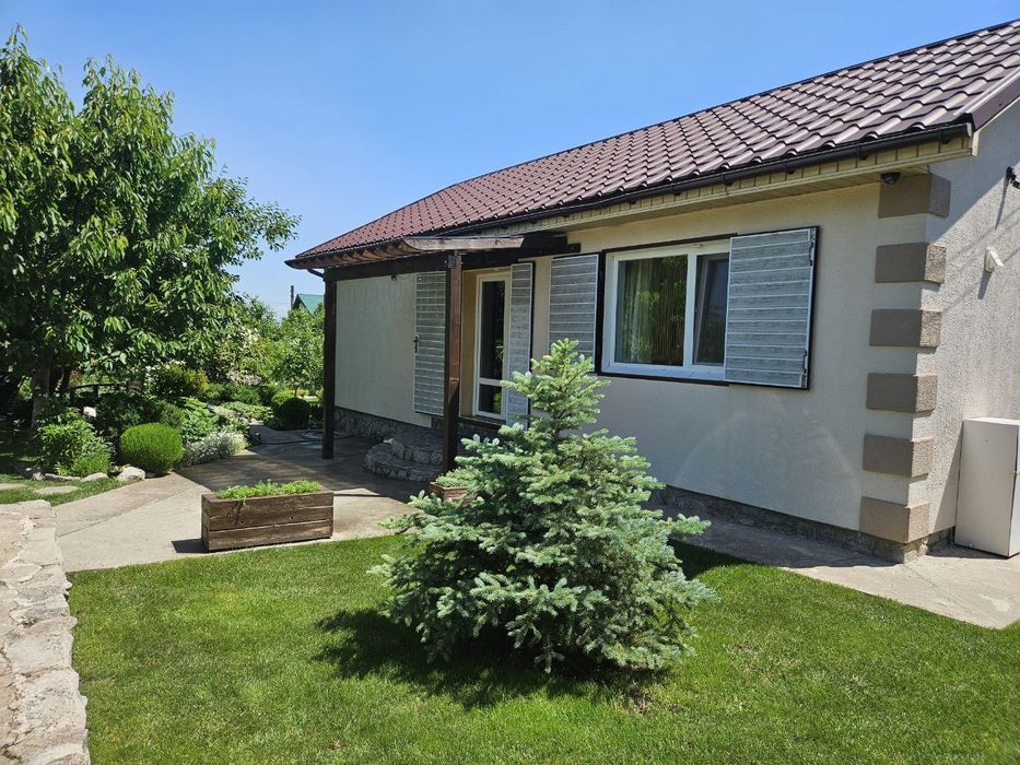Продам власний будинок - дача; Продам жилий будинок на 60 квадратів, розташований с. Володимирівське, у садовому товаристві, побудований в 2016 році. Будинок будували для себе: газоблок, дах металочерепиця, мін. вата, дерев'яна стеля,, металопластикові вікна, утеплені металеві ставні, вхідна зона утеплені металеві двері зовні та металопластикові двері всередені, свердловина з високим рівнем води, вигрібна яма, два види опалення електричне(встановлені керамічні плити) та дров'яне, новий електричний лічильник, заведена вода, світло, інтернет, система сигналізації. В будинку розташовано дві окремі кімнати, кухня - студія, об'єднаний санвузол плюс додатковий санвузол з унітазом на вулиці, також в будинку розташоване приміщення з комунікаціями під сауну. Будинок оснащений необхідною технікою: холодильник, мікрохвильова піч, газова плита з електричною духовою шафою, пральна машина, бойлер, кондиціонер. Вбудована кухня, мебльовані кімнати. Територія шість соток, огороджена високим парканом, затишна альтанка з мангальною зоною, надійний, сухий підвал з обладнанням для свердловини, спортивний майданчик, заїзд під два автомобіля, молоді плодові дерева та кущі (черешні, вишні, яблуні, слива, смородина,малина, агрус), різноманітні багаторічні декоративні рослини, газон, ландшафтний дизайн, для поливу є технічна дніпрова вода ( по ділянці розведена система поливу). Ділянка приватизована. До центру с. Володимирівське 3 км. (Магазини, аптеки, зупинка транспорту), до заливу 300 метрів. З альтанки відкривається краєвид на р. Дніпро. Фото всі актуальні, якщо є необхідність можу скинути в особисті повідомлення додаткові фото. Телефонуйте 07******72 (вайбер)