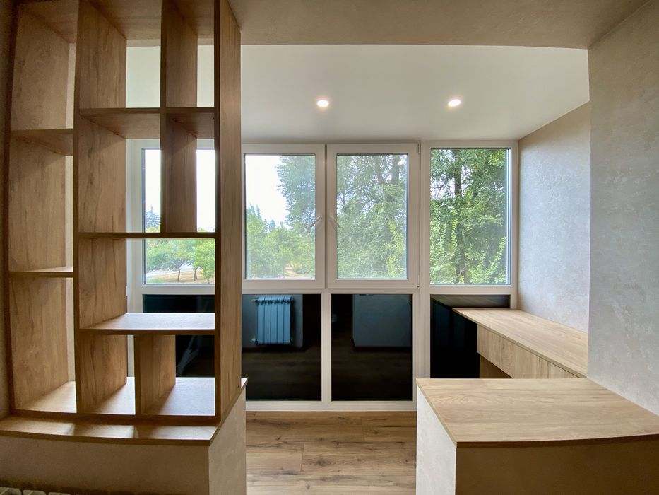 Було виконано капітальний дизайнерський ремонт із заміною всіх комунікацій. Стіни з вулиці утеплені , нанесли кароїд. Балкон -кабінет збільшений ! Використовувалися лише найкращі рішення ремонту.