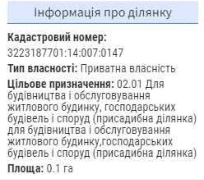 | Земельна ділянка: |