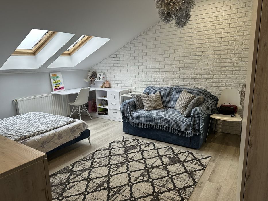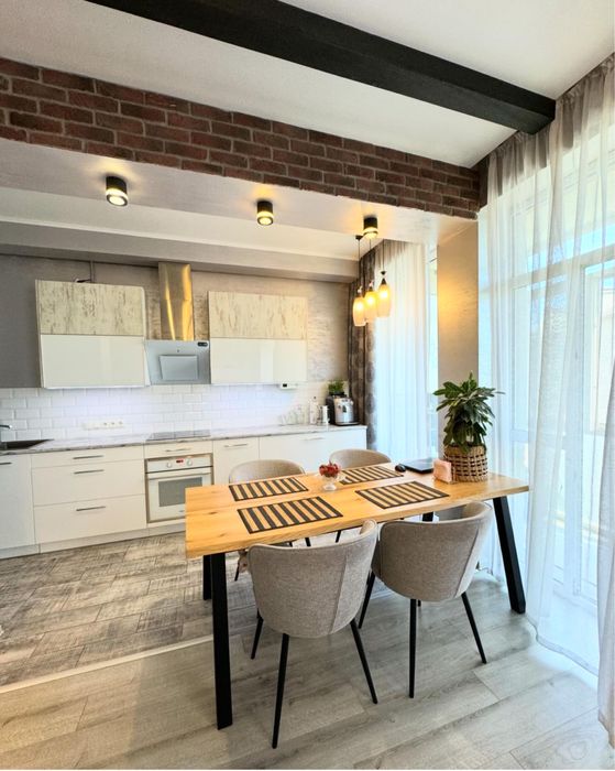 Деревʼяна столярка, вмонтована кухня під замовлення, посудомийка, кава машинка , 2 телевізора, кондиціонер, всі мʼякі меблі та ліжка від Blest.