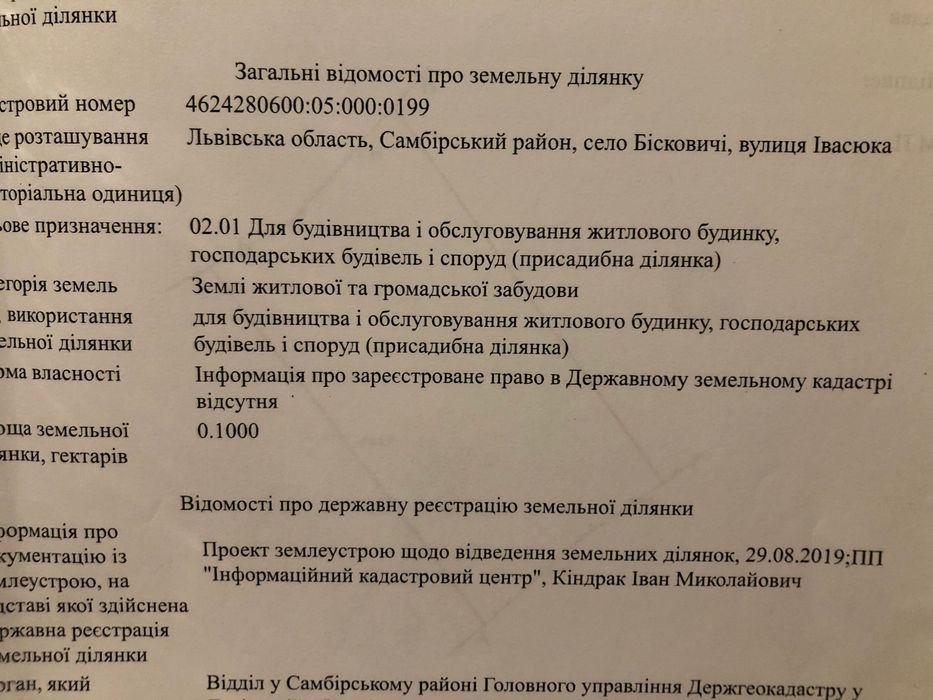 Вул.Івасюка,с.Бісковичі,Самбірський р-н.Гарне розташування,поруч озеро.По вулиці проведено світло,газ,є забудовані сусіди.