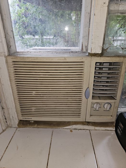 На кухні віконий кондиціонер.