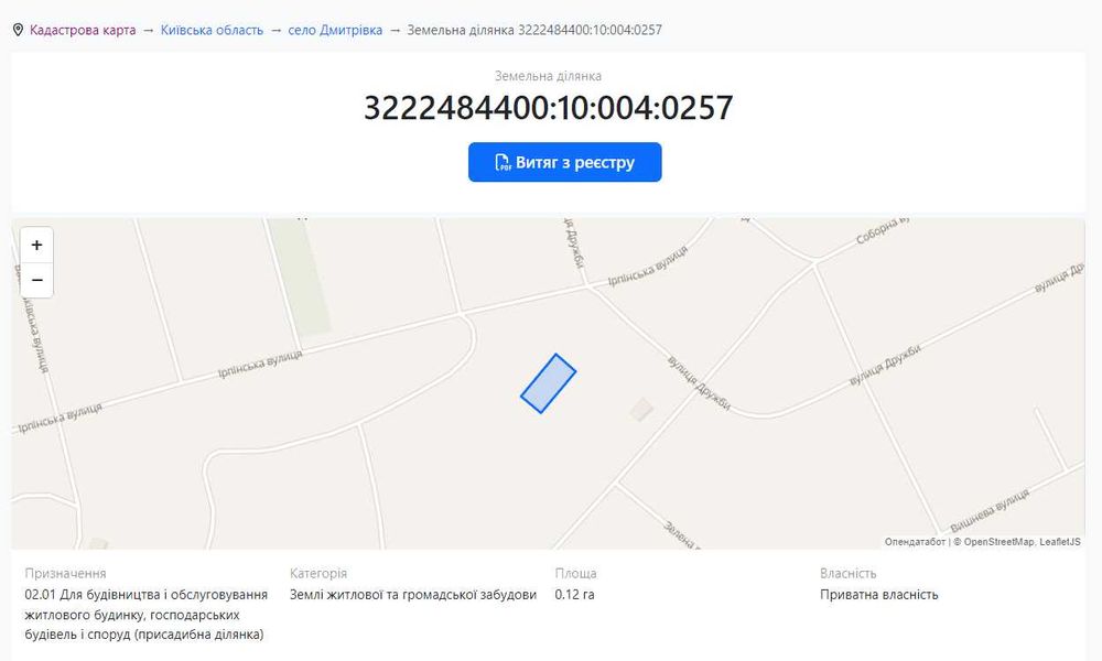 | Земельна ділянка: |