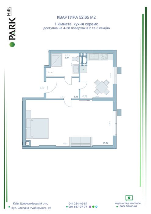 Шевченківський; Переуступка 1к квартири 53 м2 в ЖК Park Hills; Пропонується до продажу по переуступці чудова 1-к квартира в новобудові комфорт класу ЖК Park-Hills, за адресою Київ, Шевченківський р-н, вул. Степана Руданського 9 А.