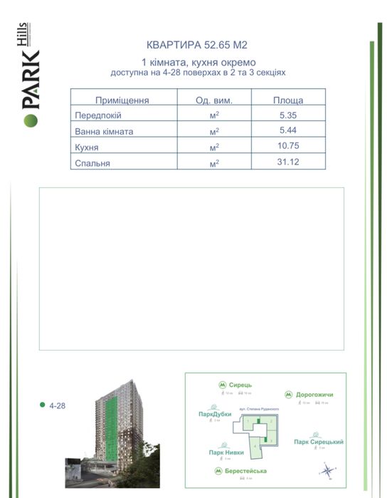 Метро Берестейська 15 хвилин, метро Сирець 12 хвилин пішки.