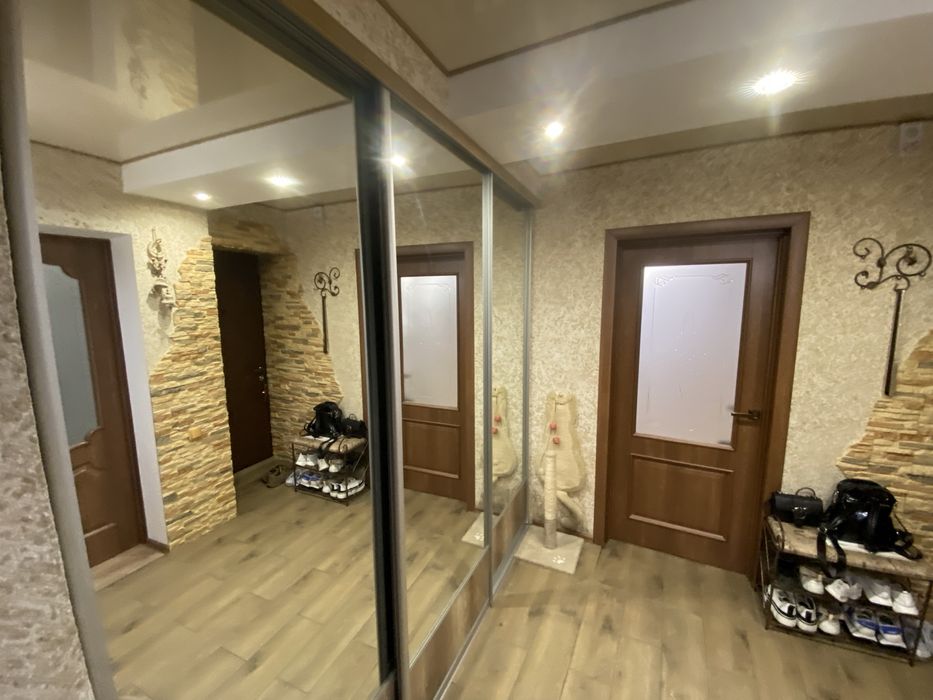 Загальна площа квартири 51.82 м, кухня 9 м. У всіх кімнатах натяжна стеля. Гарний жилий стан. У коридорі замість двох існуючих кладових зроблена міні гардеробна за дзеркальними дверима купе, в одній кладовій встановлено новий бойлер та пральна машина (останнє фото), між кладовими встановлений пенал з поличками.