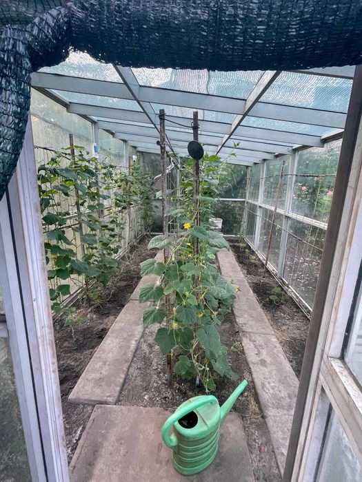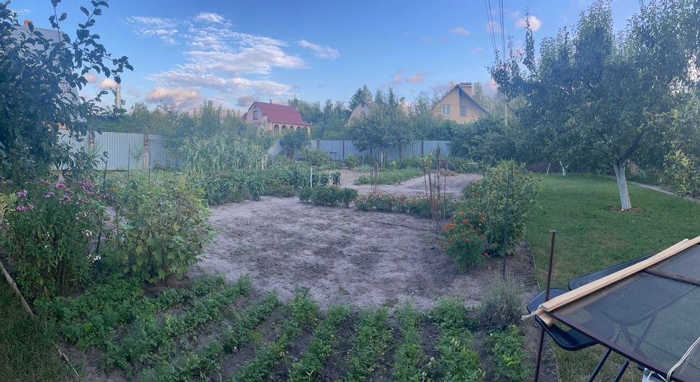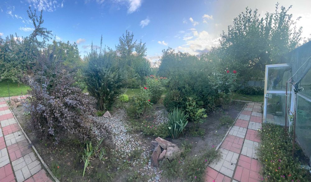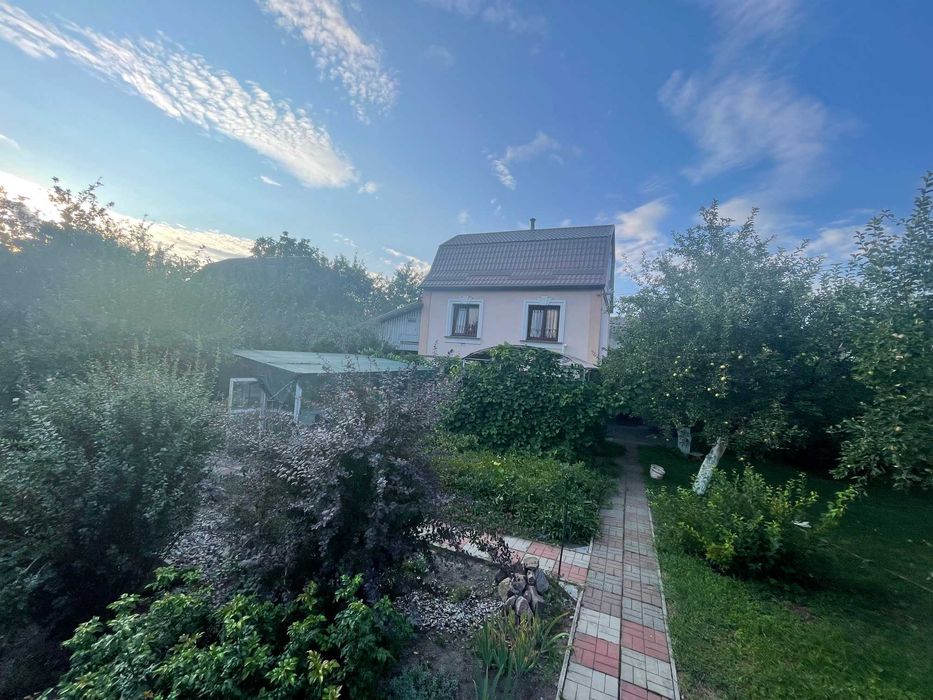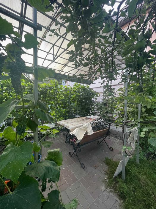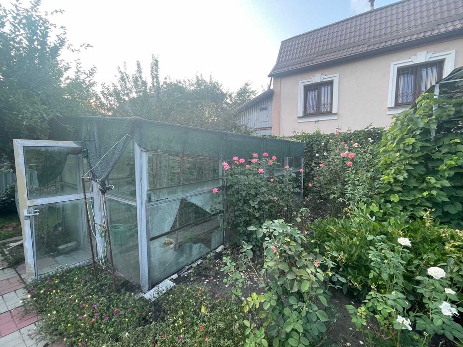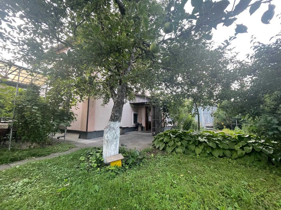 У дворі: окремі ворота з в’їздом на територію з обладнаною відкритою стоянкою, господарські приміщення (сарай, літня душова, вбиральня, колодязь (4м), свердловина (19 м), літня альтанка - зона барбекю у тіні винограду, гарний садок з плодоносних дерев (вишня, черешня, яблуні, груша, дерен (кизил), абрикос) і газоном, безліч різноманітних квітів, розарій, ялинки, велика територія з городом та парник (3, 5*6 м), дитяча гойдалка. Є запас дров (для шашлика).