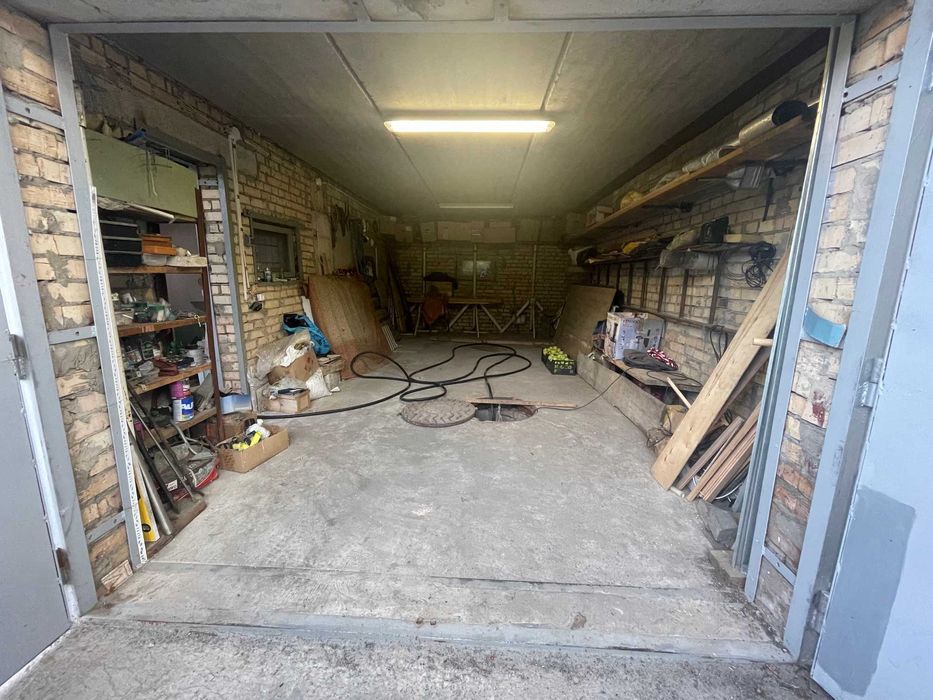 Гараж цегляний прибудований до будинку зі сторони сауни, ворота (2*3, 2 м), заїзд відразу з вулиці, додатково вхід з території. Вхід має спільний з будинком навіс.