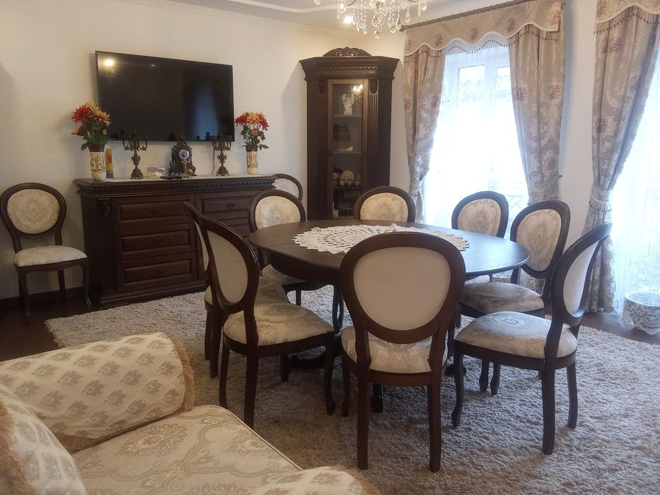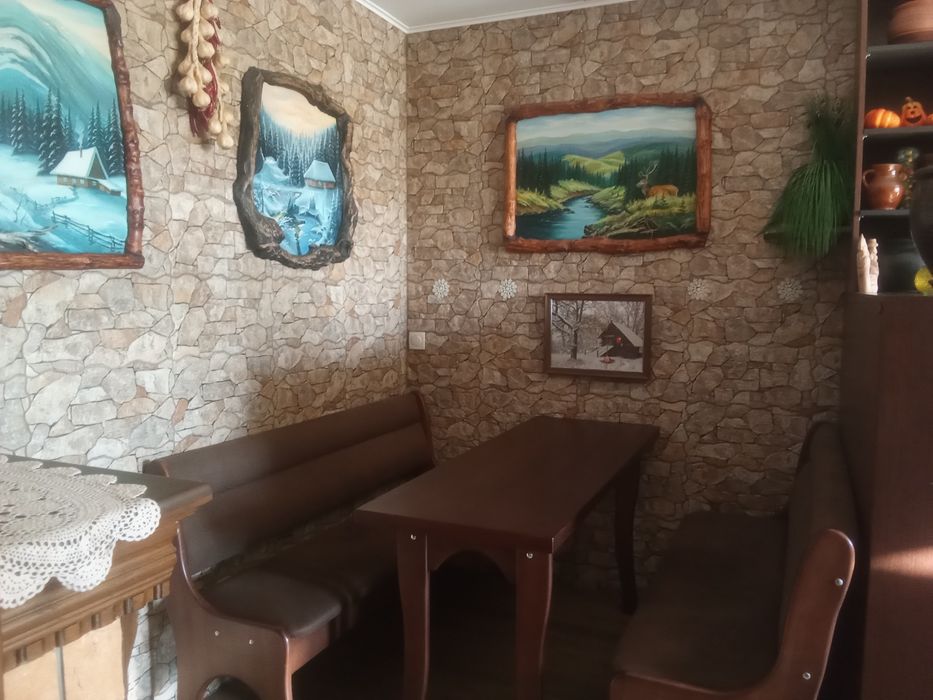 Продається новий будинок з гарними меблями. Чотири кімнати + кухня 15 м^2. У кімнатах паркетна дошка. Два санвузли. Два погріби, комора, два балкони. Гараж на дві машини. На подвір'ї бруківка і озеленення. Відеоспостереження. Докладнішеа інформація по телефону. Терміново!