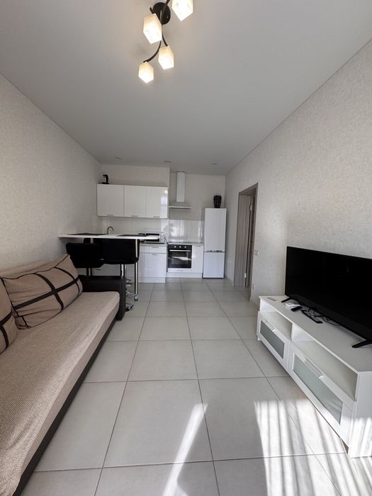кухня-студия с раскладным широким диваном.