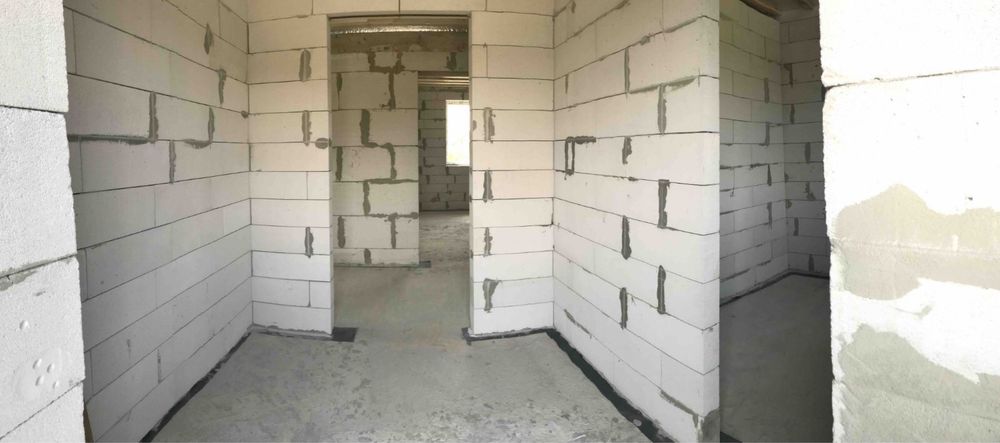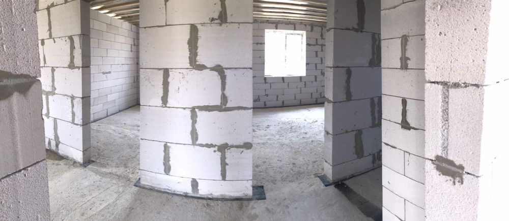 Зовнішні стіни з газоблоку товщиною 40 см, утеплення не потребує. Перестінки між кімнатами товщиною 15 см!