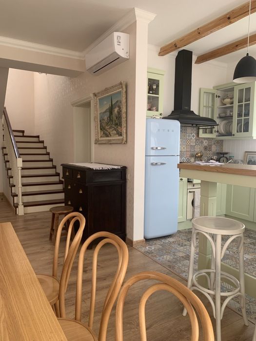 Площа ділянки 6 соток.На подвірʼї знаходиться патіо та баня на дровах з купелю.