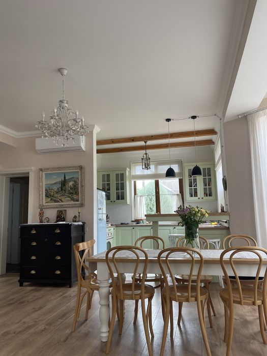 Дніпровський; Будинок у Дніпровському районі міста Запоріжжя.; Будинок побудований з червоної цегли.Дах вкритий якісною композитною черепицею.Загальна площа 180 кв.м.Складається з 3-х спалень та великої кухні-вітальні.Два санвузли.Має котельню(є газовий та електричний котел,бойлер та резервуар з водою),кімнату для прання та гардеробну.Кухня обладнана італійською технікою Smeg,у ванній якісна сантехніка,яка ще служитиме не один рік.Все продумано для комфортного проживання сімʼї з чотирьох осіб.