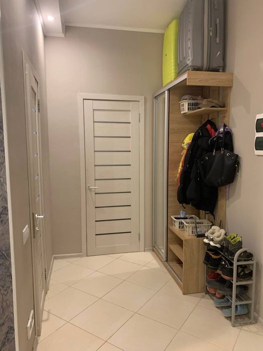 Двоспальний диван, є ліжко пʼєдестал для дитини (можна зробити робочу зону),вбудовані шафи,телевізори,пральна машинка,посудомийна машинка,мікрохвильовка,духова шафа,електрична поверхня, бойлер, холодильник.