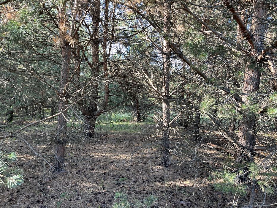 Ділянка з лісом 8 соток, Київська область, Северинівка; Ділянка у селищі Северинівка, Київська область. Правильної форми. На ділянці сосни, по вулиці проведено електроенергію, гарний підʼїзд, поряд потроху будуються сусіди. Вже переоформлена під забудову. Кадастровий номер 3222789200:02:002:0242, точні координати є на фотографії