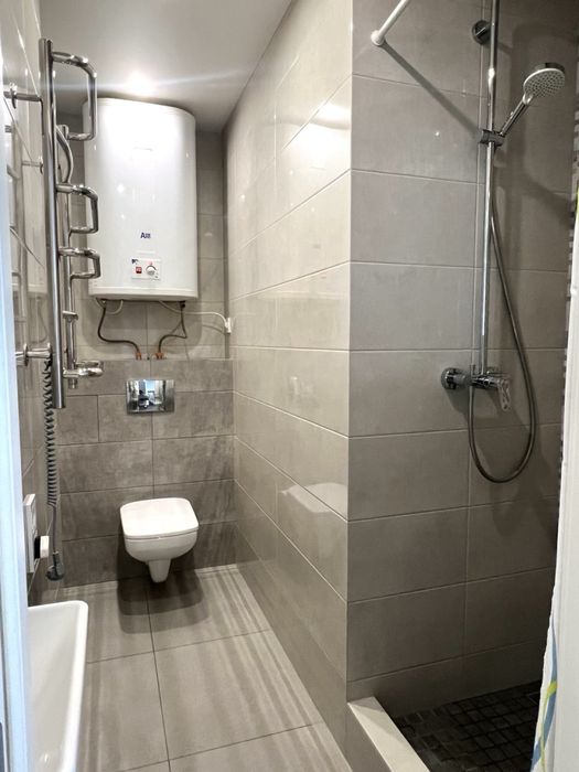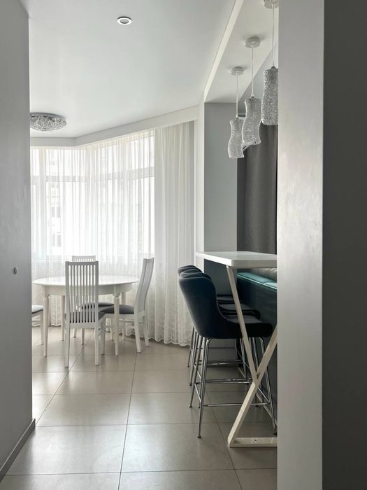 Дизайнерський ремонт, кухня і вітальня обʼєднані в одну зону, облаштована меблями і технікою, з двома санвузлами, один суміжний із ванною , інший з душевою; обладнані теплою підлогою. В спальній кімнаті є невеличка гардеробна. Є балкон, також обладнаний теплою підлогою.