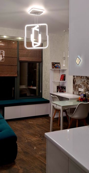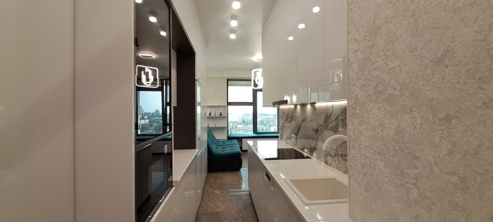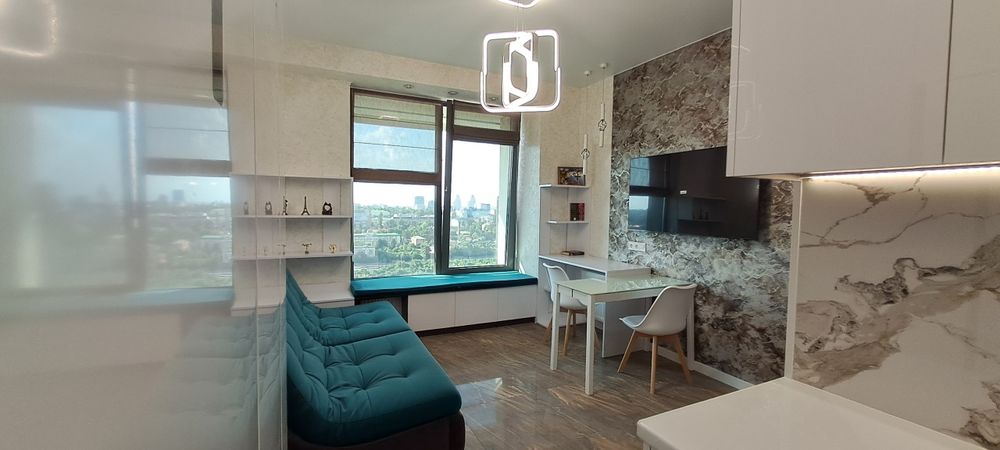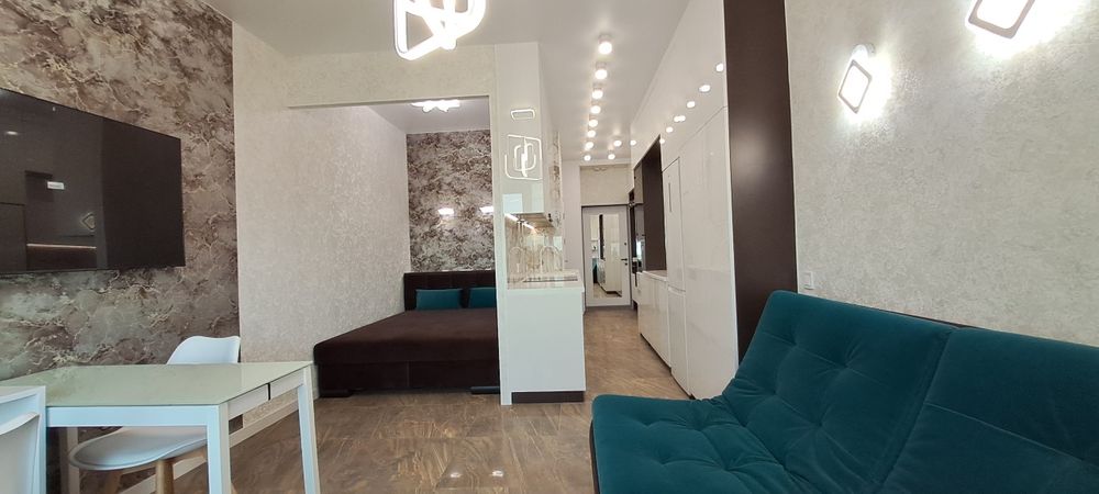Квартира з сучасним дизайнерським ремонтом, повністю мебльована, з окремою кухонною та спальною зоною, оснащена всією необхідною побутовою технікою.
