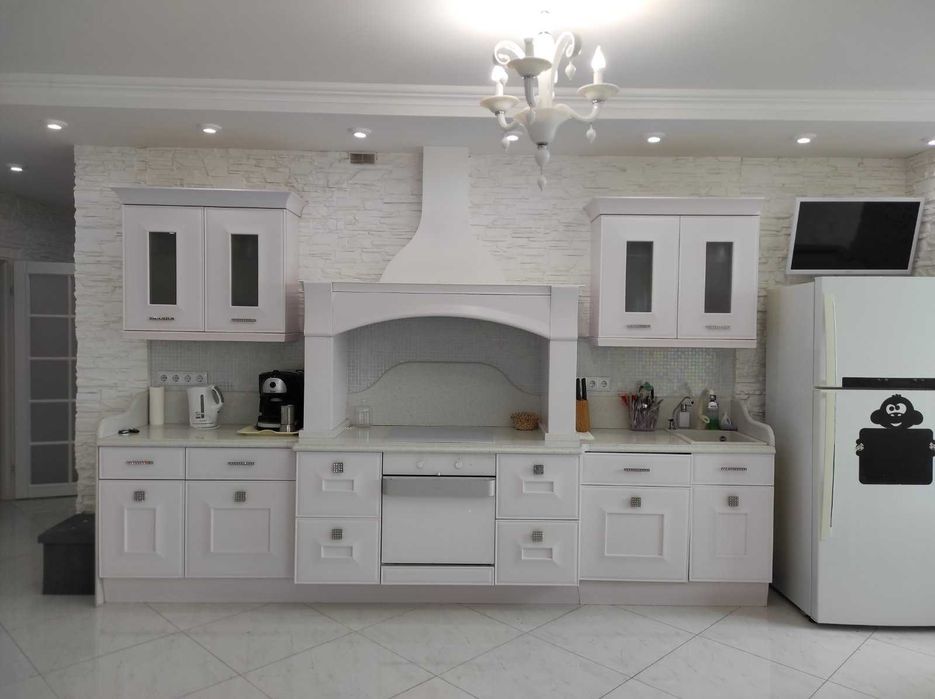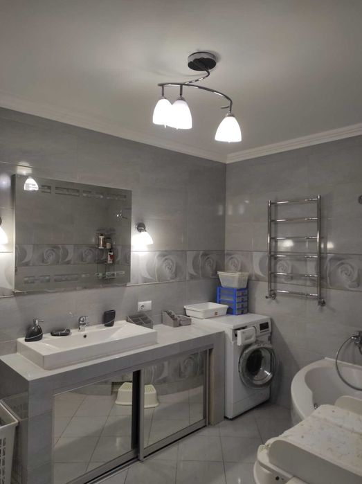 Квартира здається з меблями та побутова технікою. Електрочайник, індукційна варочна поверхня, духова шафа, мікрохвильова піч, холодильник, додаткова окрема морозильна камера, посудомийна машина, пральна машина з сушкої 2в1, фільтр питної води - зворотній осмос, Wi-Fi, інтернет, Smart TV у всіх кімнатах.