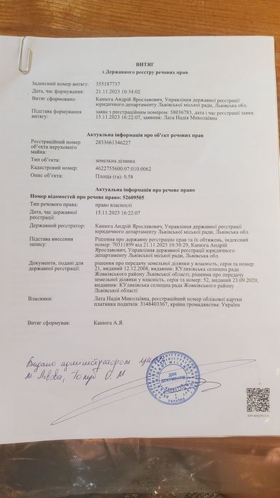 | Земельна ділянка: |