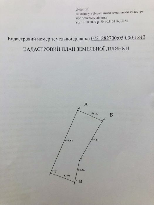 Кадастровий номер: 0721882700:05:000:1842