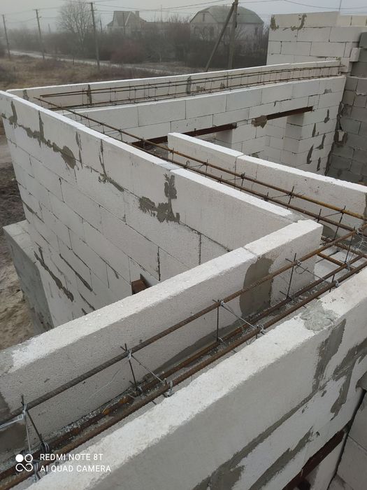 Цокольный этаж выстроен из блоков ФБС 4 в три ряда ,под блоками бетон с отвального шлака,полы засыпан щебень Стены с газоблока UDK 300 ;400, шлакоблок,перекрытие плиты.По цокольному этажу вставлены окна,на гараже металлические ворота.В дом заведенено электричество,водоснабжение ,канализация,