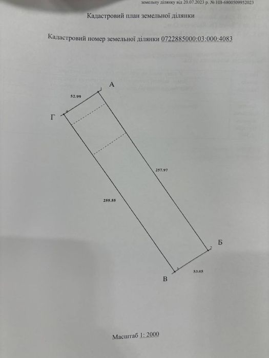 Кадастровий номер земельної ділянки 0722885000:03:000:4083