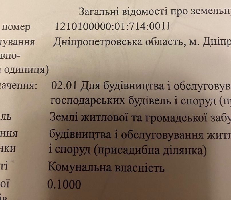 | Земельна ділянка: |