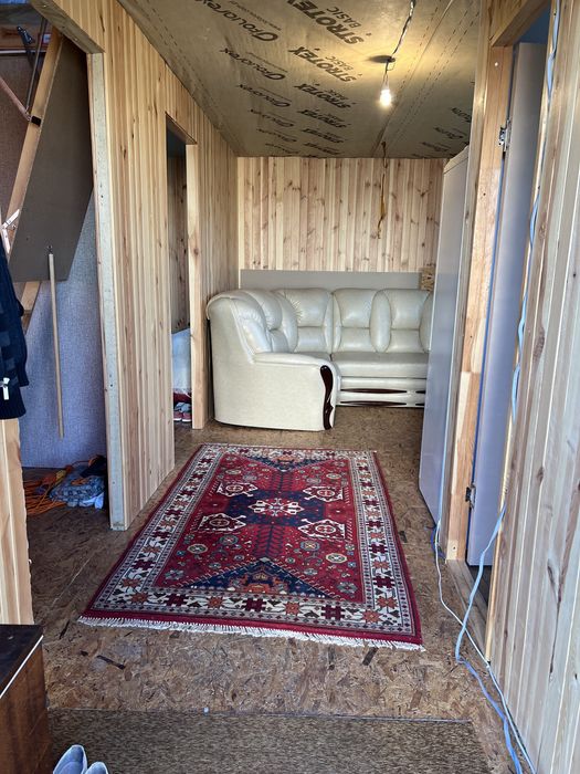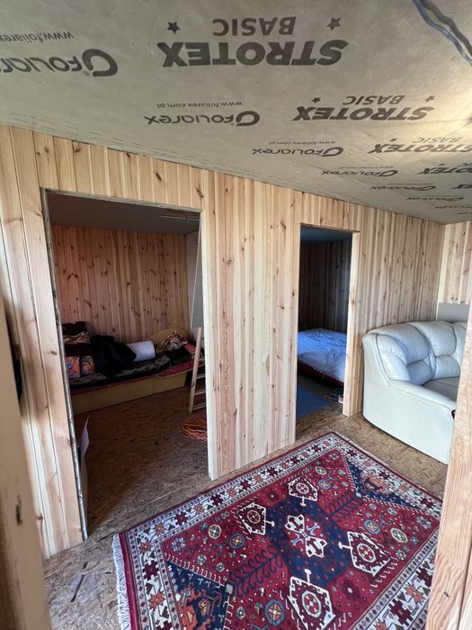 Також в домі туалет і умивальник. Встановлена насосна станція, вода заведена в дім, зроблена розводка труб по дому. Виходи для бойлера і душової кабіни. Підключено три фази 6 кВт, чернова електро розводка в домі. Каналізація також є, викопаний септик на два кільця. Є невеличкий сарай для садового інвентаря.
