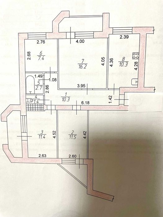 Всі кімнати окремі. Кухня 10,3м, 3 балкона.
