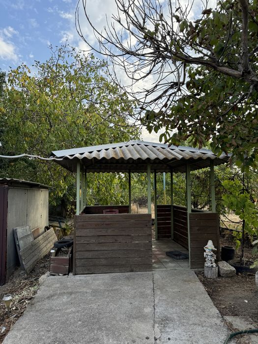 В доме 4 комнаты, есть подвал, один диван, одна двуспальная кровать, одна односпальная (диван раскладной и спать может 2 человек) Есть своя скважина, колодец. Второй дом во дворе - это летняя кухня и еще две комнаты. На территории беседка, небольшой гараж. Душ, туалет на улице. Два сарая для садовых инструментов; дровятник, углятник; чердак под крышей.Огромный огород (есть виноградники). Мебель прилагается. Печка в доме. Есть забитонированная площадка под бассейн.