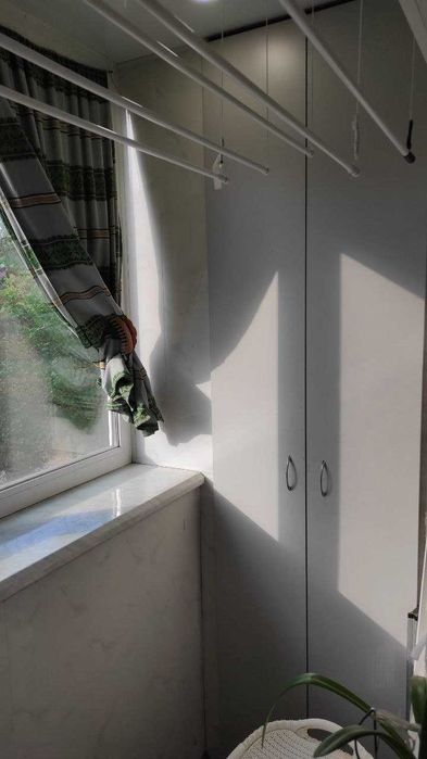 Квартира розташована у третьому під'їзді будинку, двостороння (не кутова) на 3 пов. 5 пов. будинку. Загальна площа 54,5 кв.м. Дві кімнати суміжні. Повністю мебльований і засклений балкон зі своїм світлом і розеткою.