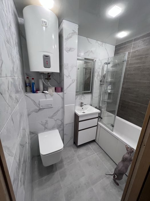 Везде натяжные потолки/пол ламинат, линолеум, кафель