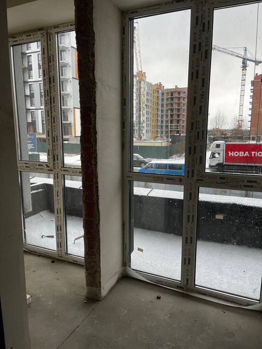 》Вид з вікна на другорядну дорогу, між сусідніми будинками в сторону Києва.