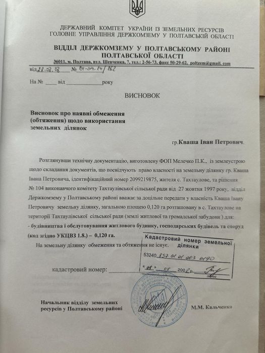 | Земельна ділянка: |