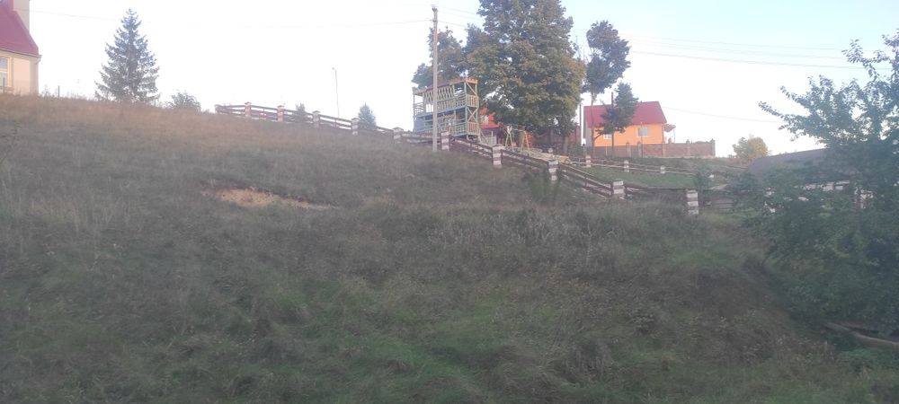 Ділянка має 12 сотих але знаходиться на косогорі,також через ділянку йде центральна вода .