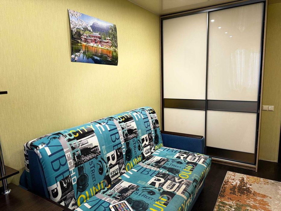 окрема дитяча кімната оснащена спорткуточком, якісним диваном і робочим столом,