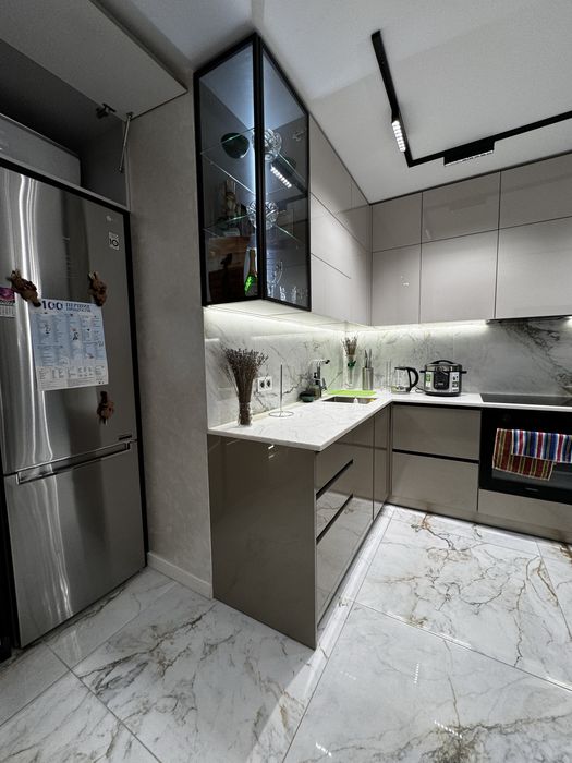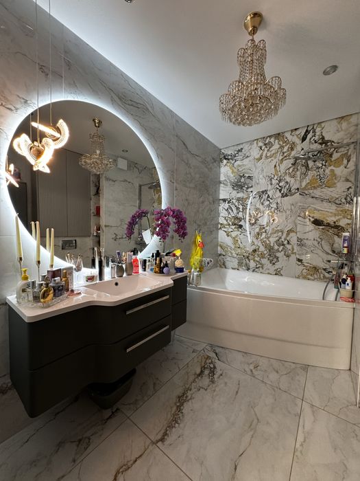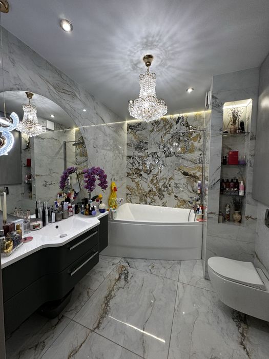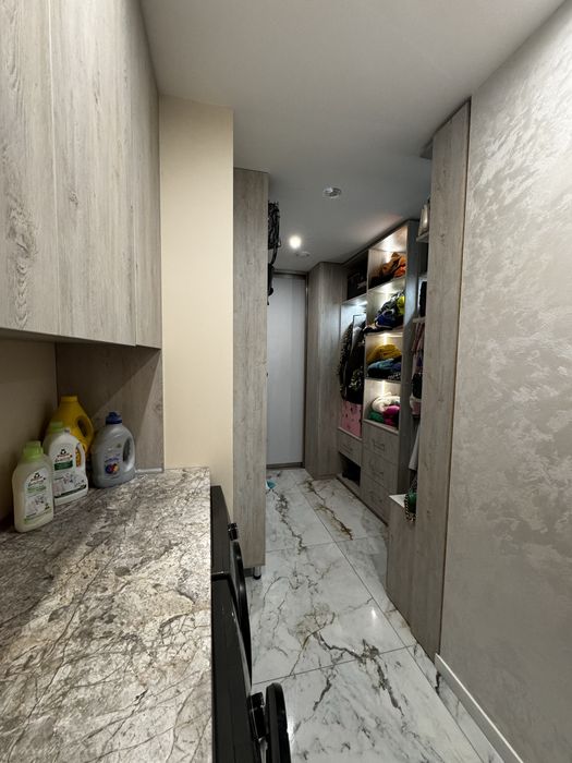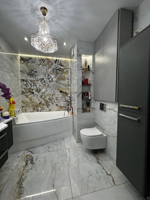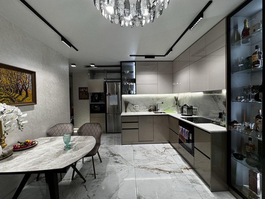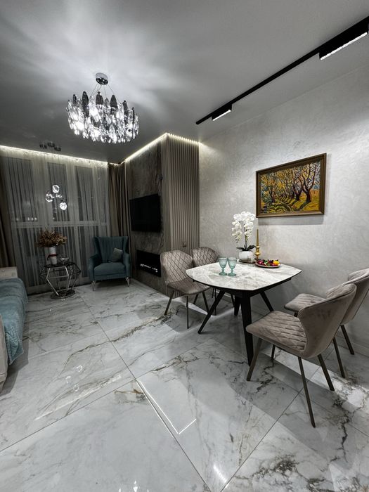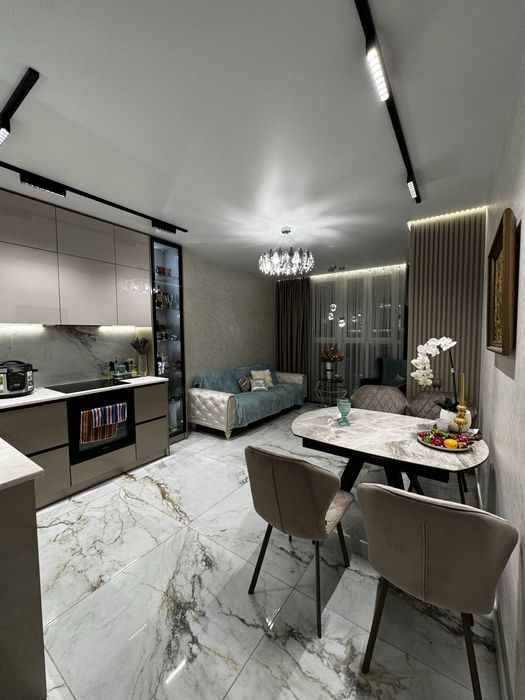 2-х кімнатна квартира ,з кухнею студією,гардеробом .Ванна кімната спільна з вбиральнею .Окрема зона пральної кімнати.Є балкон (всі вікна в квартирі в підлогу )