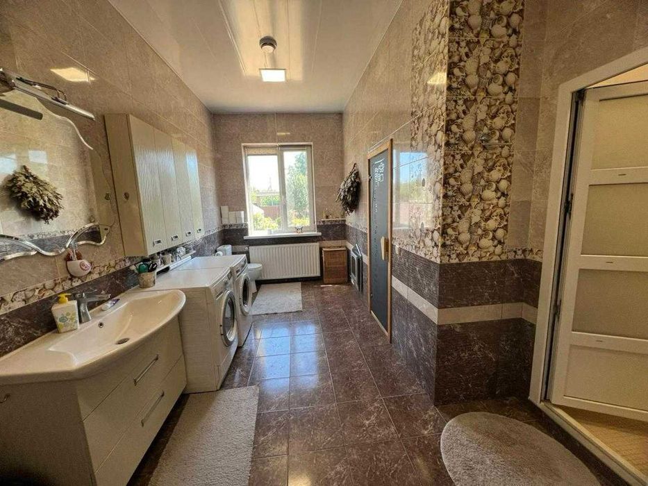 Продам мебльований будинок, повністю готовий до нових господарів; Продам новий будинок, повністю мебльований, з усією необхідною побутовою технікою (газова плита, духовка, витяжка, кондиціонери, машинки-пральна, сушильна, посудомийна), інтернет, кабельне телебачення, супутникове телебачення, відеоспостереження, сигналізація, автономне опалення, свердловина 70м, напруги, автоматичні ворота з двох сторін ділянки, що виходить на дві вулиці та автоматичні ворота цокольного поверху.