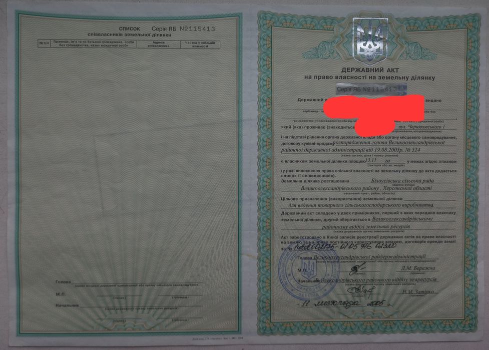 | Земельна ділянка: |