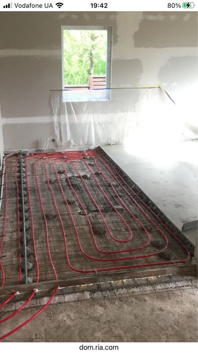 Підготовлене місце під камін з водяним контуром.