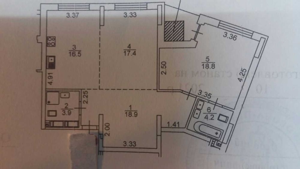 Возможно сделать перепланировку в 3х комнатную.