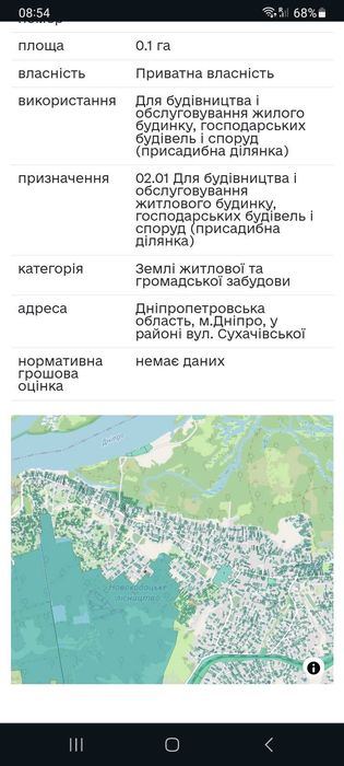 Новокодацький; Земельный участок (10 соток); Земельный участок 10 соток в районе улицы Сухачёвской (на фото расположение отмечено крестиком красного цвета)