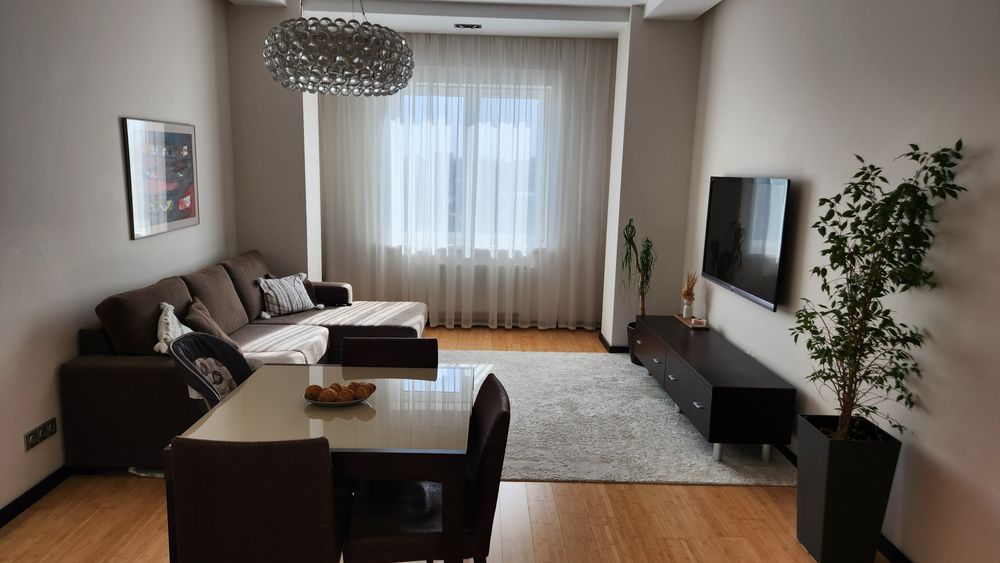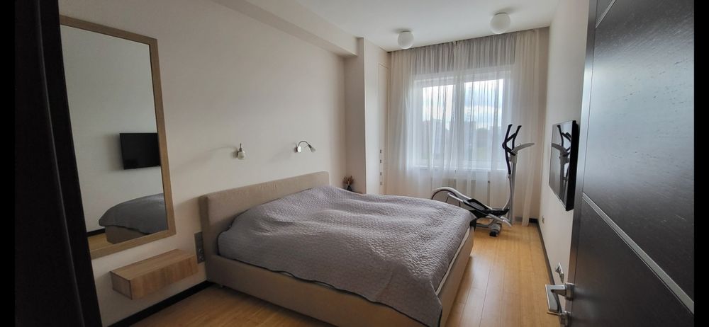 Спланирована: Кухня-гостиная 46.4 м2 , 2 спальни, 1 сан узел, гардеробная при спальне, постирочная - кладовая. Выполнена качественная шумоизоляция всех стен, полов и потолка.