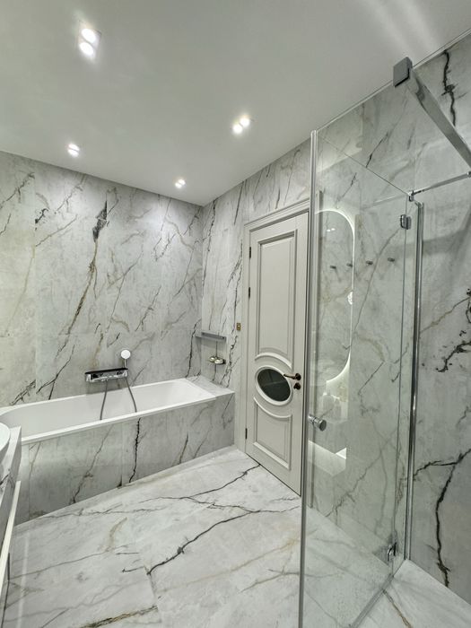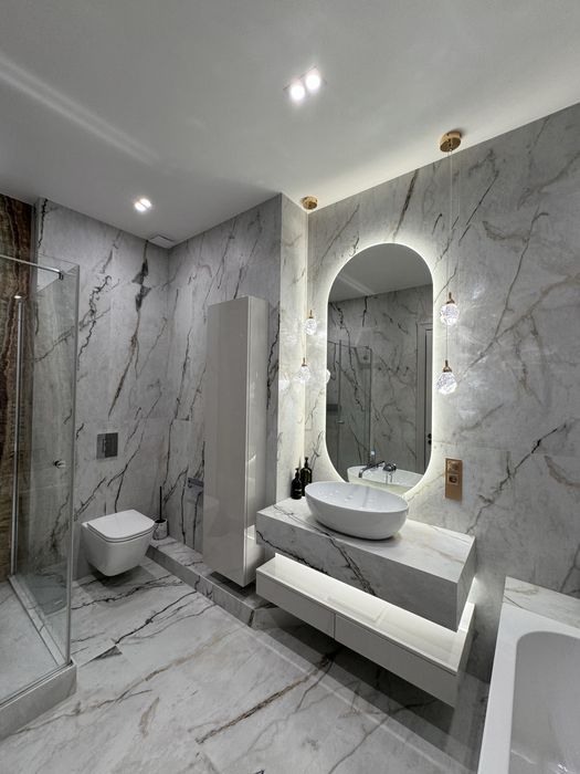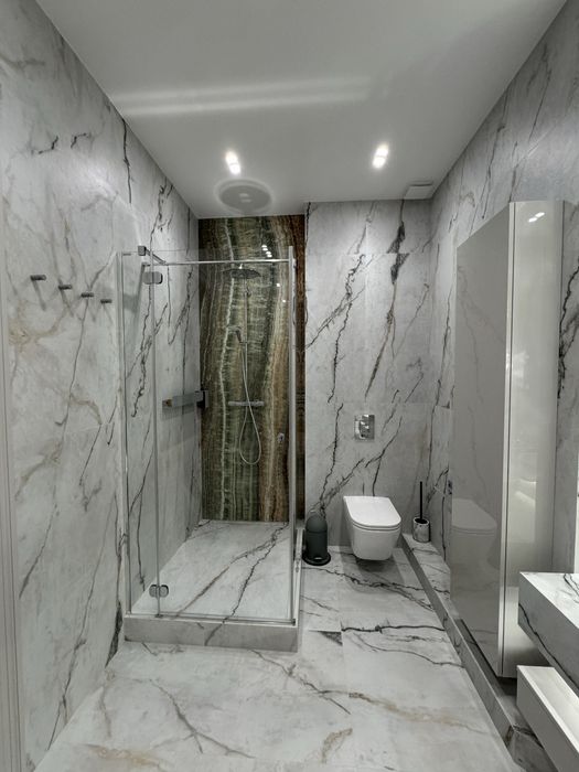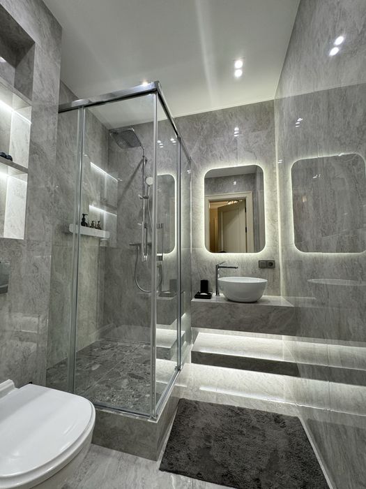 Ванна кімната душ.кабіни Radaway,сантехніка Hansgrohe,раковини Catalano Italy,Керамограніт La Faenza Aesthetica Італія,меблі у ванну замовлені з фабрики з лід підсвічуванням.