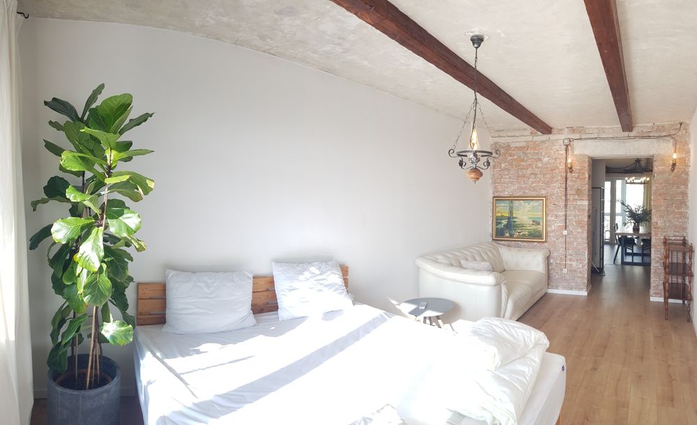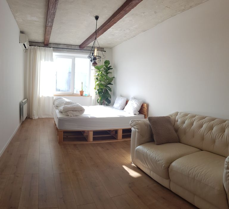 Квартира в стилі ЛОФТ з кондиціонером (обігрів, охолодження), шкіряними меблями, двоспальним ліжком, балконом з панорамними вікнами з видом на променад.