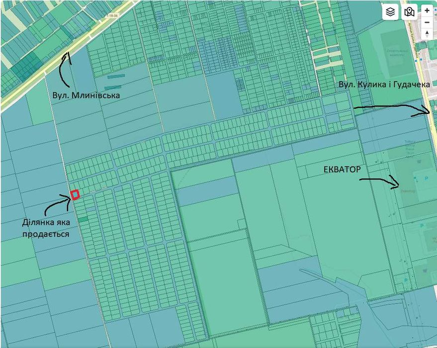 На мою думку ділянка в майбутньому буде тільки рости в ціні, оскільки житлові масиви поблизу все далі і далі розбудовуються, на разі відстань до найближчого будинку становить приблизно до 800м, до того ж ділянка знаходиться неподалік від багатьох торгівельних центрів (Екватор, Метро, Епіцентр)